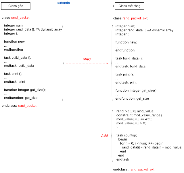 Trong System Verilog (SV), mở rộng class là một khả năng giúp class có tính kế thừa và tái sử dụng rất cao. Bài viết này trình bày chi tiết về khả năng này và những vấn đề liên quan đến việc mở rộng class giúp bạn đọc nhanh chóng hiểu và sử dụng.